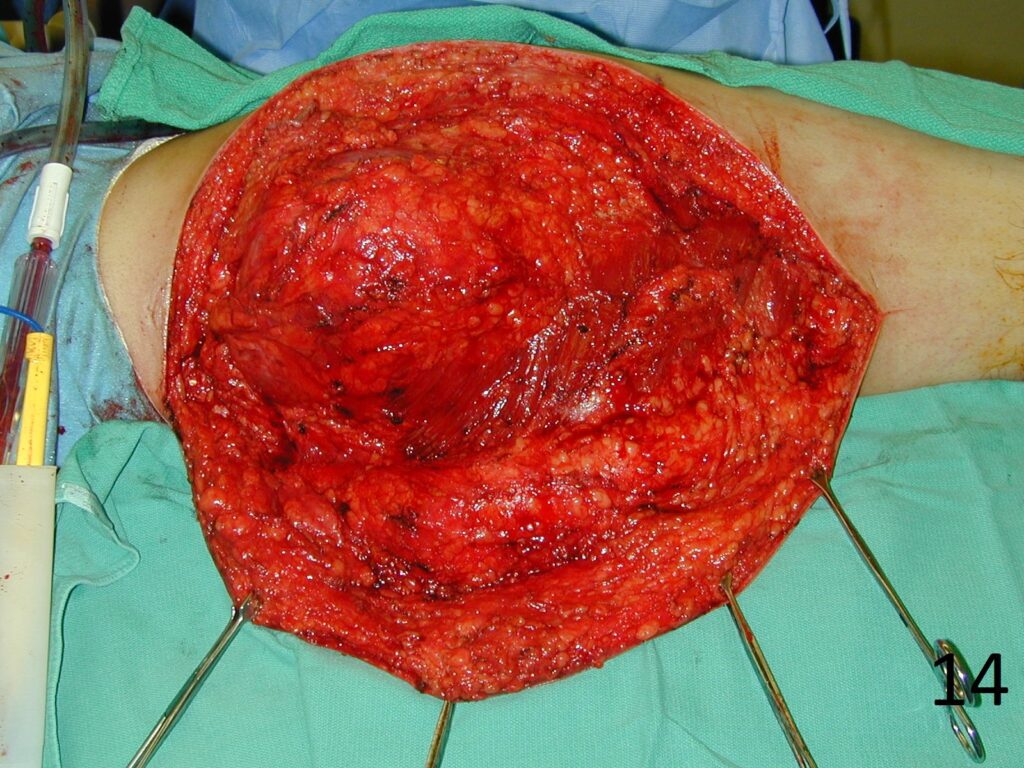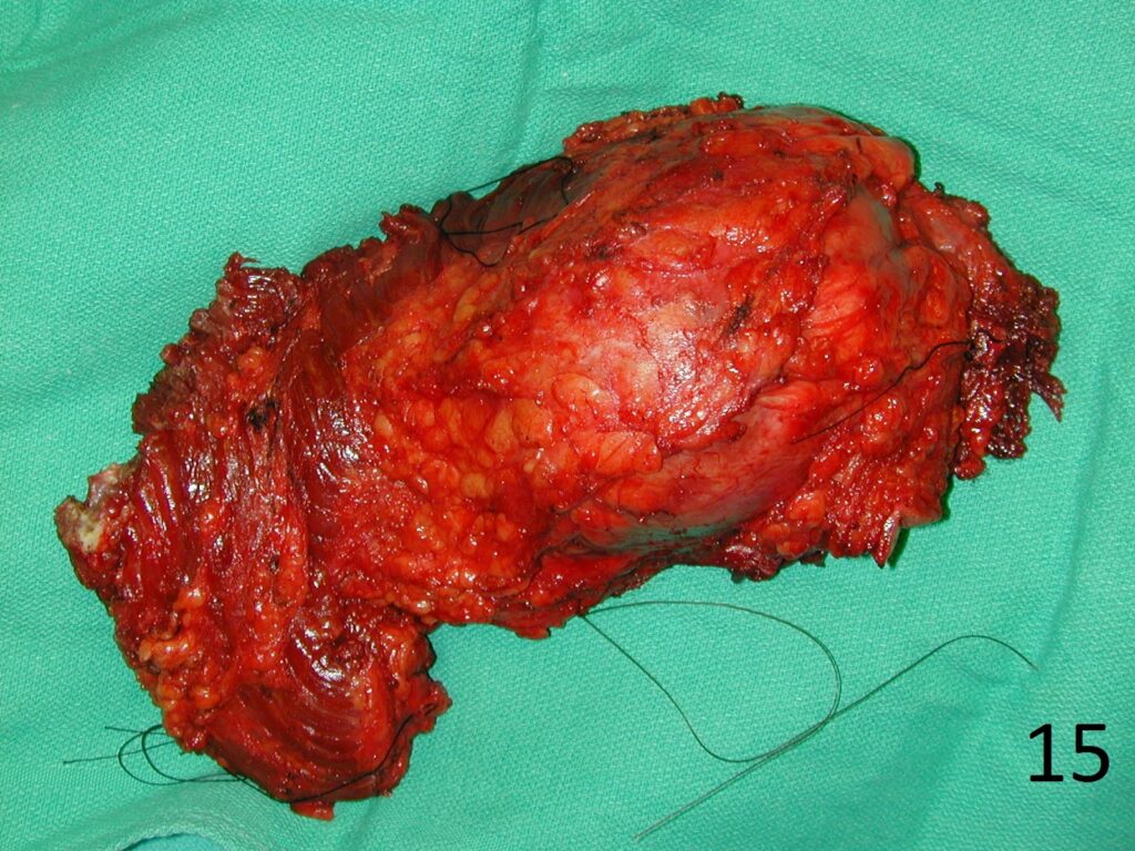 Fig. 13-15: Intraoperative photograph of a radical resection of fibrosarcoma of the buttock (Gluteus Maximus Muscle) (Fig. 13,14,15).
