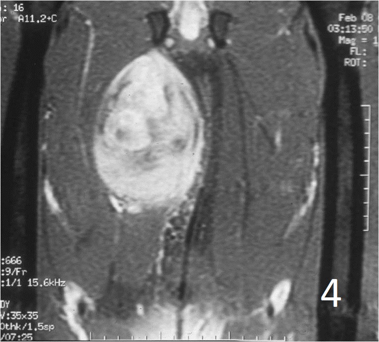 • Well defined heterogenous mass on T2W (Fig. 4, 9)
