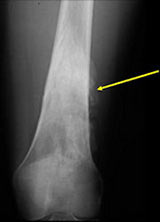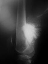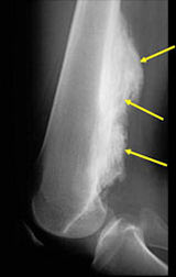 - There is no periosteal reaction since the tumor comes from the outer layer of the periosteum and therefore does not elevate the periosteum.