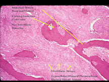 - Usually a low grade tumor with fibroblastic stroma and osteoid/woven bone