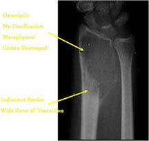 - Osteolytic and expansile on X-ray with very little osteoid production