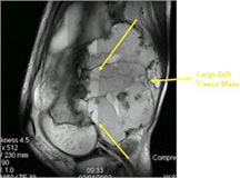 - Fleshy and sclerotic tissue typical of a conventional osteosarcoma is not seen
